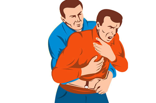 Si la persona se está ahogando por un objeto extraño (caramelo, hueso pequeño, queso de pizza, etc.) llame al SEM, pregúntele si puede respirar, si asiente con la cabeza, no puede hablar y tose débilmente, pídale que tosa a fin de intentar que lo elimine por sus propios medios; si esto no sucede póngase detrás de la persona, realice compresiones abdominales rápidas, lo que se denomina maniobra Heimlich. En el caso de que sea un menor, nos adaptaremos a la altura de este, generando una presión abdominal acorde al tamaño del menor. En el caso de un lactante, se realizaran pequeños golpes sobre los omoplatos, NUNCA sobre la columna.